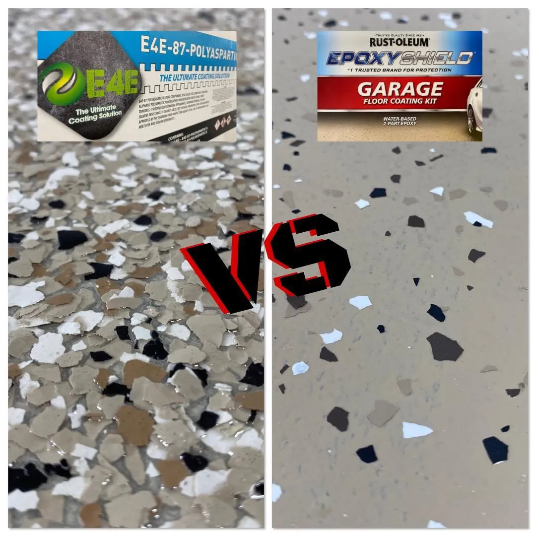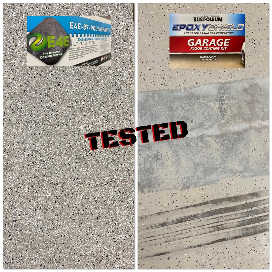 We have run many tests on the quality and longevity of our product and installation VS using store bought kits. There's no question there's a difference just by studying the image. DIY Kits are sold everywhere and they will typically last upwards of a year if done correctly, much less if quickly applied. The best case option for a homeowner is to acid etch the concrete to remove as much oil and chemicals as possible, but it's still not enough.